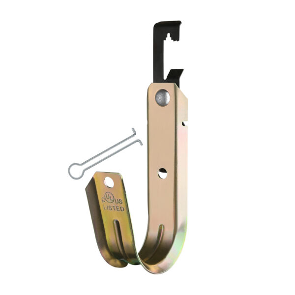 Batwing J Hooks, Size 2″ with Retainer Pin, High Quality Steel for Strength & Durability. Beveled Edge provides proper cable support, cUL Listed, Double Zinc Plated for Greater Corrosion Resistance- 10 pc/Inner Box