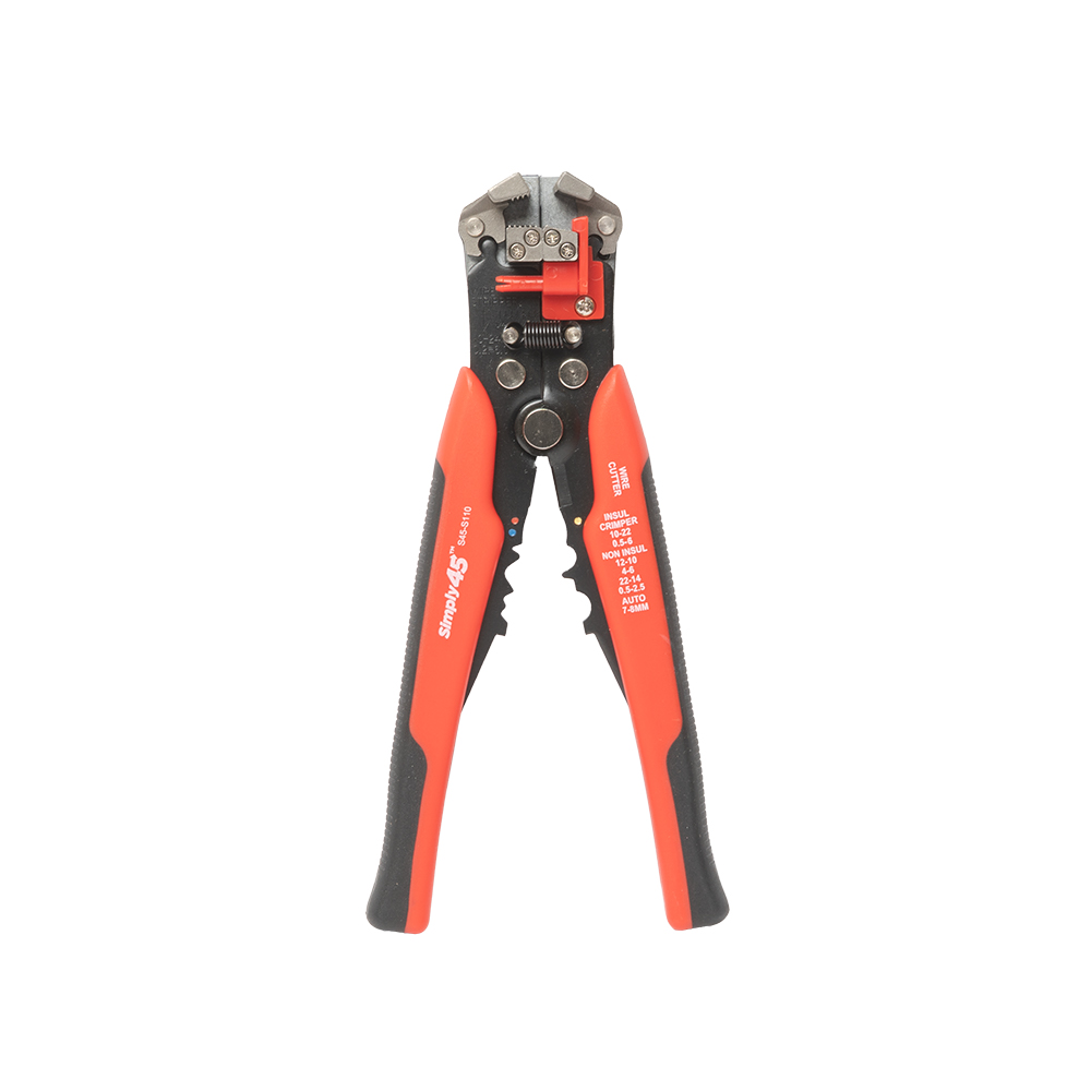 The Simply45 self-adjusting wire stripper & cutter automatically adjusts to a wide variety of wire sizes. Simply squeeze the handles, it grips, cuts, and cleanly removes the insulation. The adjustable stopper provides a consistent strip length. This 3-in-1 tool is highly valued by technicians for the ability to automatically strip wire, cut wire, and crimp terminals.