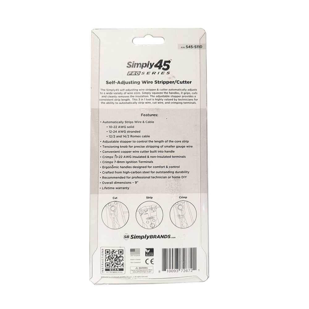 S45-S110 – Simply45™ Self Adjusting Wire Stripper – 1Ea/Blister