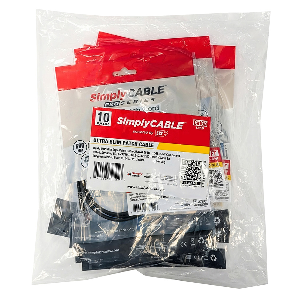 SC-PC1701SLBK-10 – 1ft/0.3m – Cat6a UTP Slim Style Patch Cable 28AWG 568B – Black, 1ea/Bag-10pc Pack