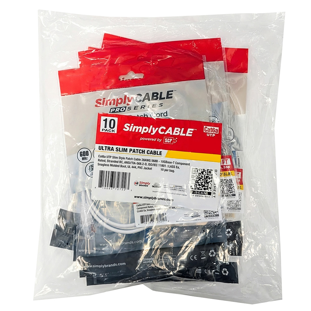 SC-PC1701SLWT-10 – 1ft/0.3m – Cat6a UTP Slim Style Patch Cable 28AWG 568B – White, 1ea/Bag-10pc Pack